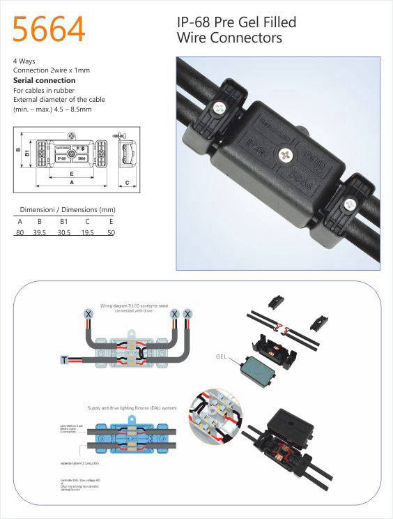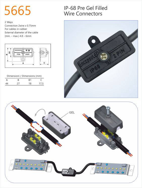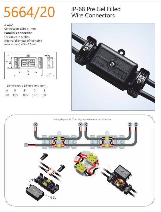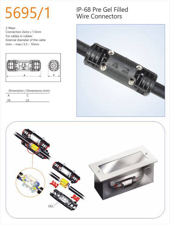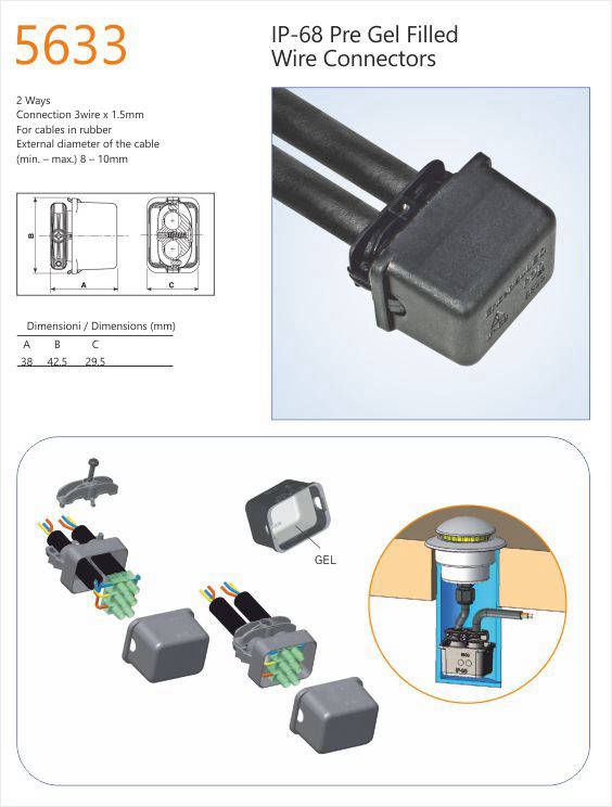 The GEL will cover cables, the conductors and the electrical connection ensuring electrical insulation and preventing dust and moisture infiltration, between the external surface of cables and the external part of the connector; between the inner insulating layers and the individual conductors. This is a unique feature in the IP68 waterproof connectors. The other products available in the existing market protects only the external insulation of the cable.